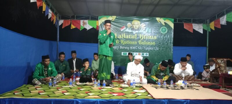 “iya malam ini kembali kami MWC NU Tungkal menggelar pengajian rutin. Acara ini disusun, Lailatul Ijtimak, pengajian rutinan bulanan, pembacaan Maulid Simtudduror dan tausiyah agama” ujar Kyai Susilo