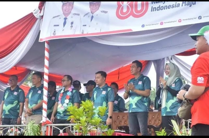 Aek Meliuk, Batang Hari – Bupati Batang Hari, Fadhil Arief, bersama istri, Bunda Zulva Fadhil, menyambut langsung kedatangan peserta pawai pembangunan dalam rangka HUT ke-80 RI di garis finish, destinasi wisata Aek Meliuk. Acara ini juga dihadiri oleh Kapolres Batang Hari, Ketua DPRD Batang Hari, unsur Forkopimda Batang Hari, para Asisten Setda Batang Hari, serta para tamu undangan lainnya.