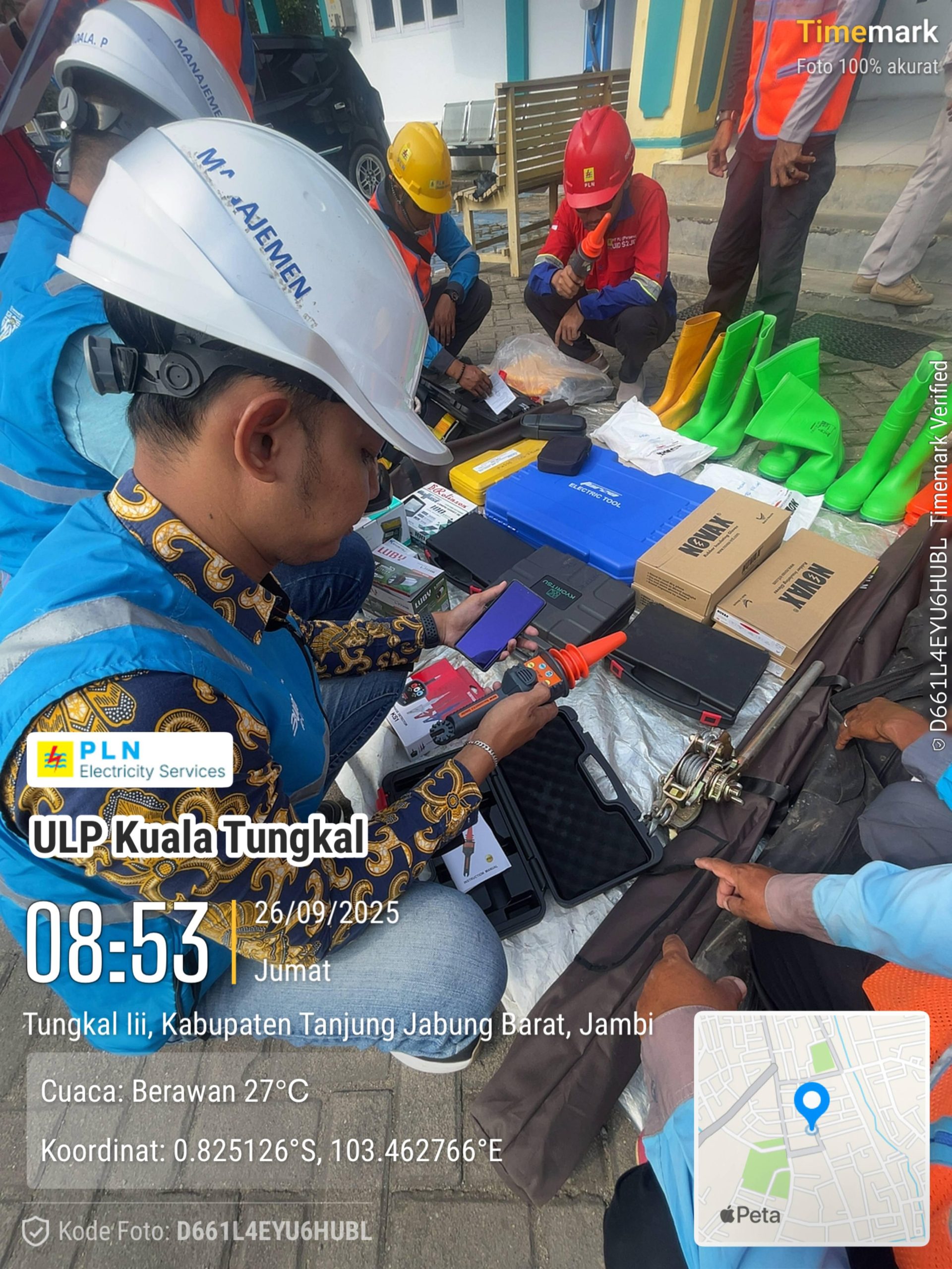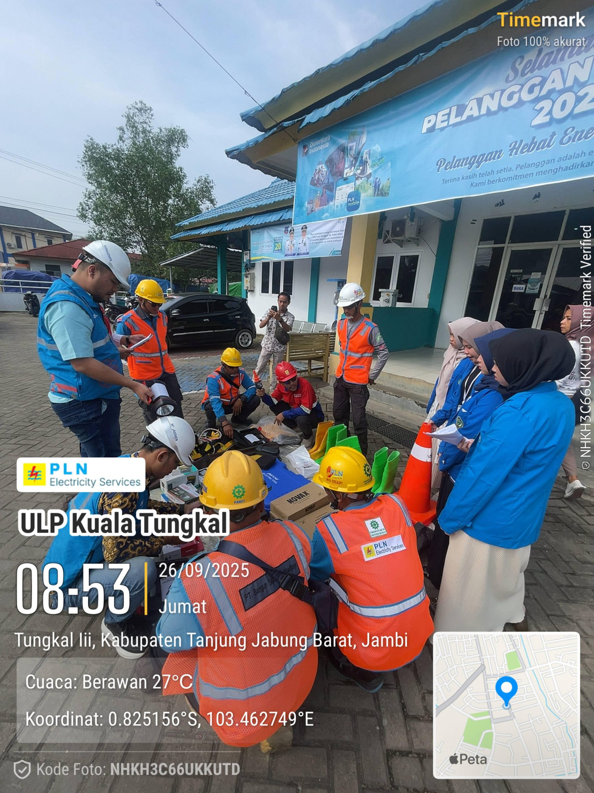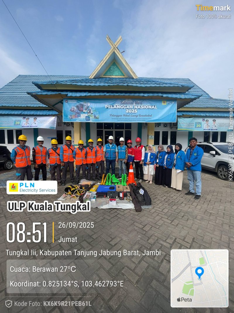 Kegiatan ini berlangsung di Halaman Kantor PLN ULP Kuala Tungkal, Jl. Beringin No. 78, Kelurahan Patunas, Kabupaten Tanjung Jabung Barat.