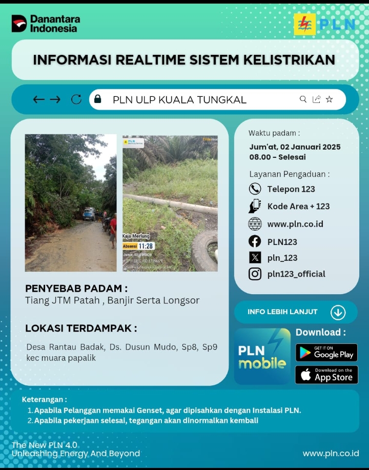 PLN ULP Kuala Tungkal telah memberikan informasi terkait penyebab dan wilayah yang terdampak.