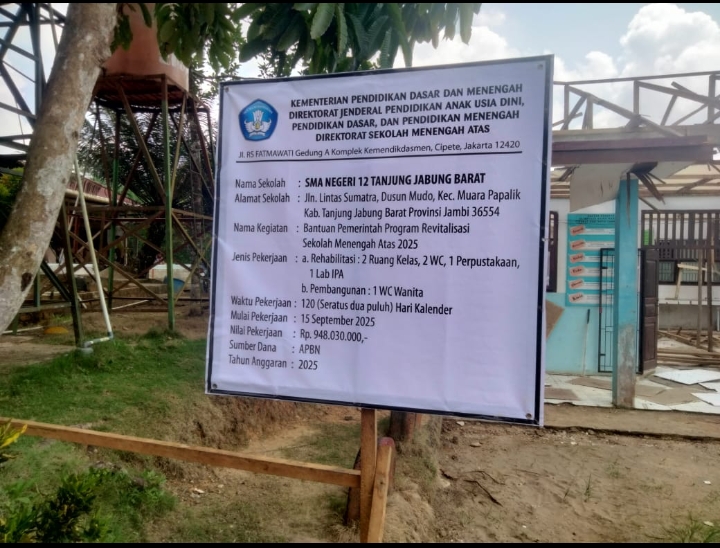 TAnjab Barat – Program Revitalisasi SMAN 12 Tanjab Barat yang dibiayai Dana Alokasi Khusus (DAK) Tahun Anggaran 2025 diduga mengalami mark up anggaran, sementara penggunaan Dana Operasional Sekolah (BOS) juga menjadi sorotan karena kurang transparansi.