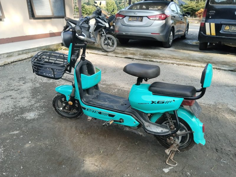 Dalam penggerebekan tersebut, polisi berhasil menyita barang bukti berupa satu unit sepeda listrik warna hijau tosca dan nota pembeliannya.
